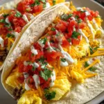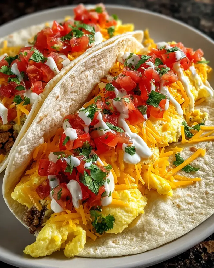 Now for the fun part! Take your warm tortillas and divide the scrambled eggs evenly between them. Sprinkle shredded cheddar cheese over the hot eggs, allowing it to melt just a bit. Next, layer on those diced tomatoes and chopped cilantro, along with a spoonful of salsa. If you’re feeling fancy, add a dollop of sour cream. Finally, fold the tortillas over the filling and serve immediately. Enjoy!