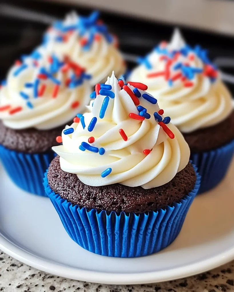 Delicious and festive cupcakes perfect for celebrating the 4th of July.