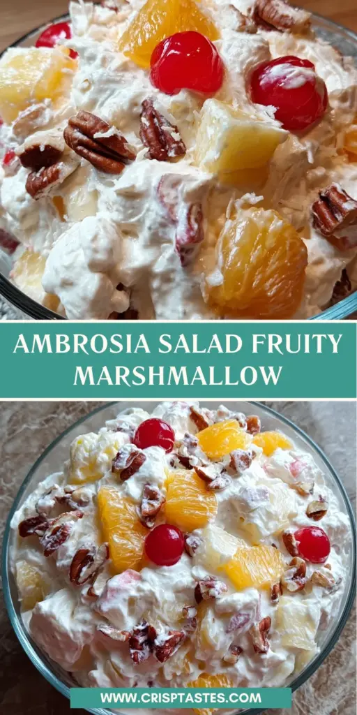 Every time I whip up this Ambrosia Salad Fruity Marshmallow, it feels like I’m inviting a scoop of sunshine into my kitchen. The vibrant colors and delightful textures bring smiles to faces, making it a showstopper at any gathering. Plus, it’s such a breeze to prepare! Whether it becomes a family favorite or a crowd-pleaser at a potluck, this salad brings a sense of joy and nostalgia. Remember, cooking is about creating memories, and this refreshing treat is sure to spark happiness and sweet moments with every bite. So go ahead, make it yours!
