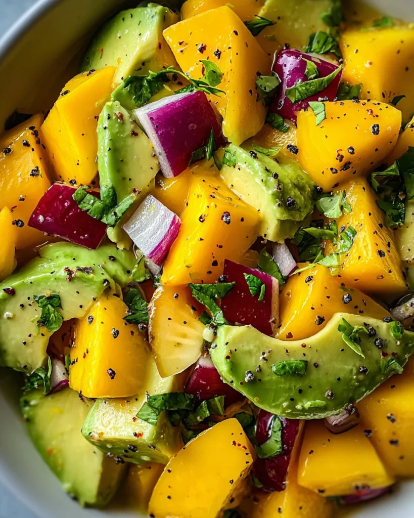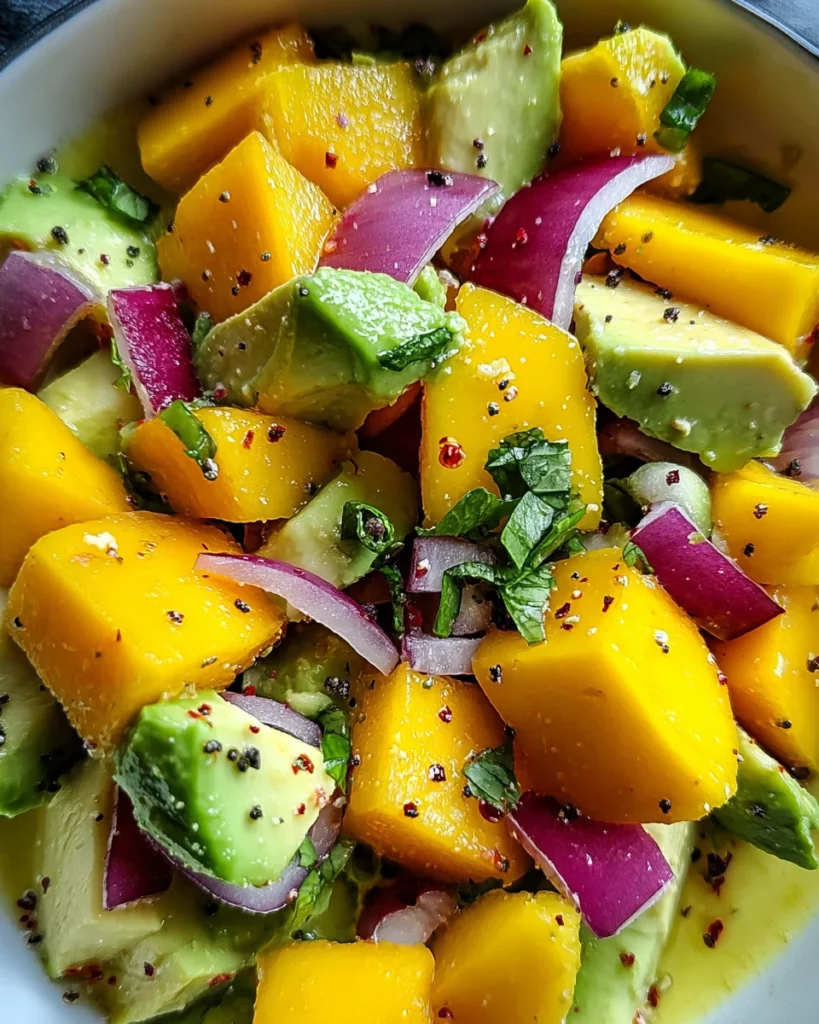 A refreshing salad made with avocado and mango, perfect for a healthy snack or side dish.