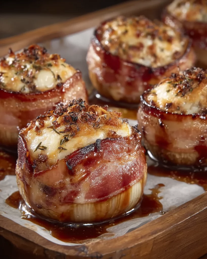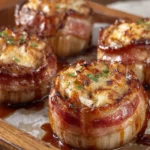 Bacon Cheddar Onion Bombs are a delicious fusion of flavors, featuring juicy ground beef wrapped around cheddar cheese and encased in layers of tender onions, all wrapped in smoky bacon.