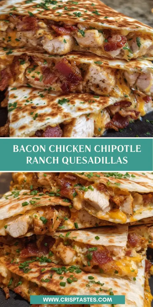 Every time I whip up these Bacon Chicken Chipotle Ranch Quesadillas, it feels like a mini celebration in my kitchen! The delightful combination of crispy bacon, tender chicken, and that luscious chipotle ranch sauce wraps up all the goodness we crave. Whether I’m cooking for my family or having friends over, this dish never fails to impress. Plus, it brings everyone together, sparking laughter and chatter over every cheesy, crunchy bite. So, next time you’re looking for a quick and mouthwatering meal, remember this recipe—it’s sure to become a cherished favorite in your household!