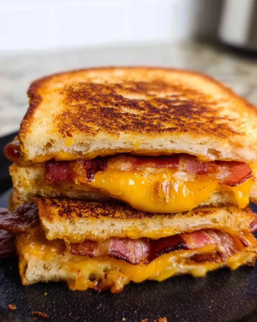 Bacon Grilled Cheese is the ultimate comfort food, combining crispy bacon and melted cheddar cheese between two slices of perfectly toasted Texas Toast.