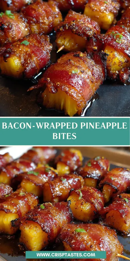 Bacon-Wrapped Pineapple Bites are a delicious combination of sweet and savory flavors, perfect for appetizers or party snacks.