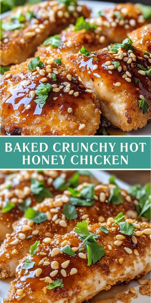 Cooking should be a joyful experience, and my Baked Crunchy Hot Honey Chicken embodies that spirit. It’s not just a meal; it’s a chance to gather around the table with loved ones, sharing laughter and stories. The crispy texture paired with the sweet and spicy sauce creates a delightful harmony that will leave everyone asking for more. Plus, it’s simple enough for busy nights yet impressive enough for special occasions. I hope this recipe brings as much joy to your kitchen as it has to mine. Happy cooking, and enjoy every delicious bite!