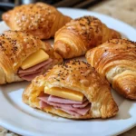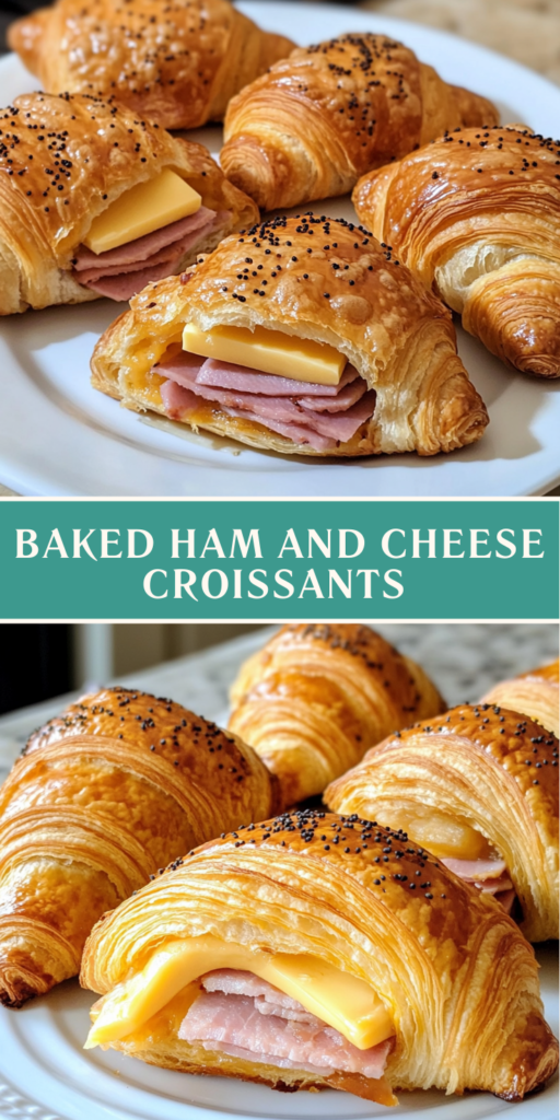 A delightful recipe for baked ham and cheese croissants that are flaky, buttery, and perfect for breakfast, brunch, or a quick snack.
