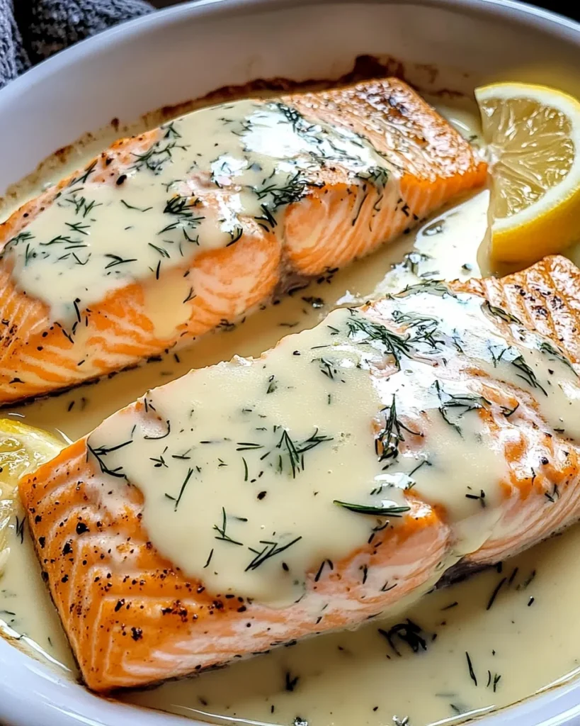 Baked Salmon with Lemon Butter Cream Sauce is a delicious and easy-to-make dish that combines the rich flavors of salmon with a creamy lemon butter sauce.