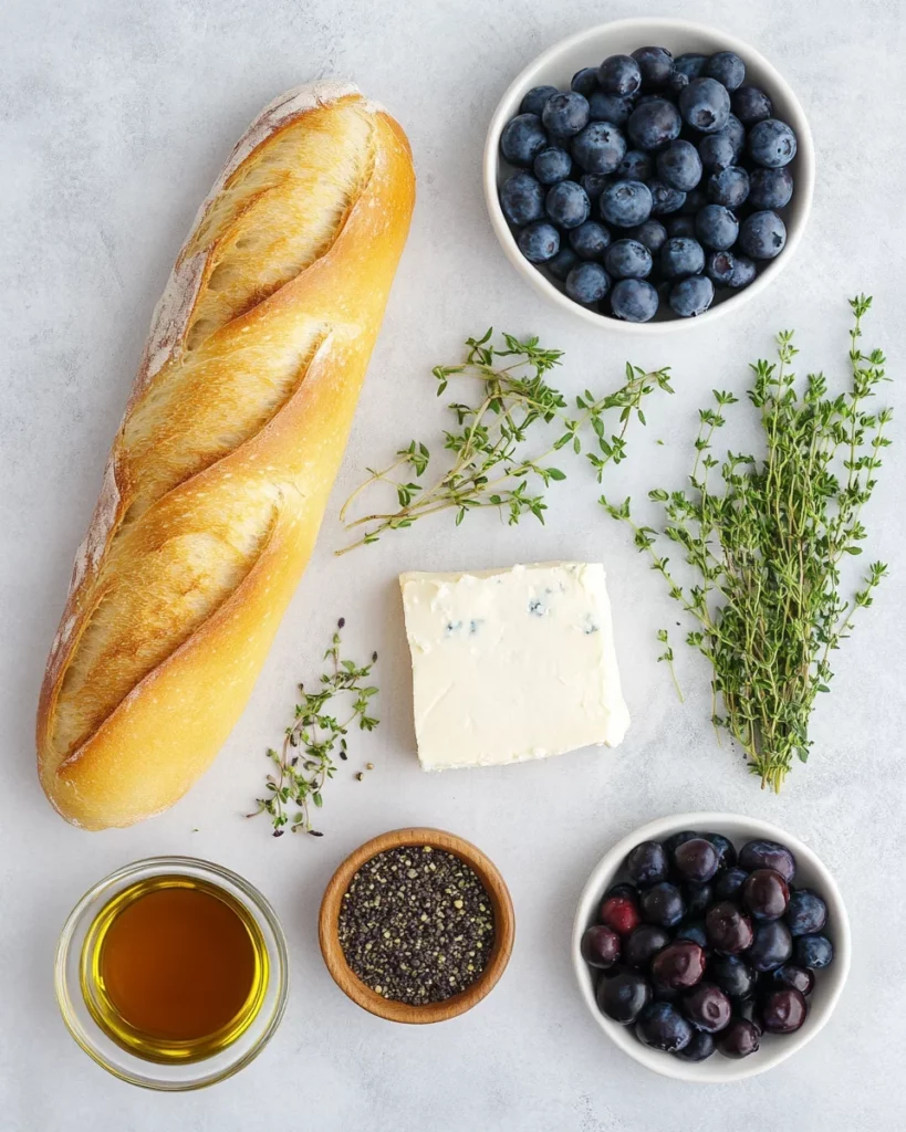 Let’s gather our ingredients for this delightful Balsamic Blueberry Goat Cheese Toast! Each component plays a vital role in creating that perfect balance of flavors. Here’s what you’ll need: