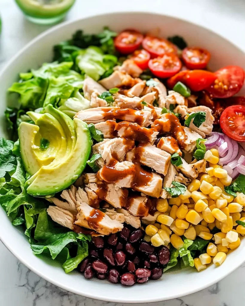 It’s light yet fulfilling, bursting with vibrant colors and incredible taste. Each bite is a delightful combination of crisp veggies and tender chicken drizzled in rich BBQ sauce, satisfying your cravings without the guilt. You’ll fall in love with it instantly!