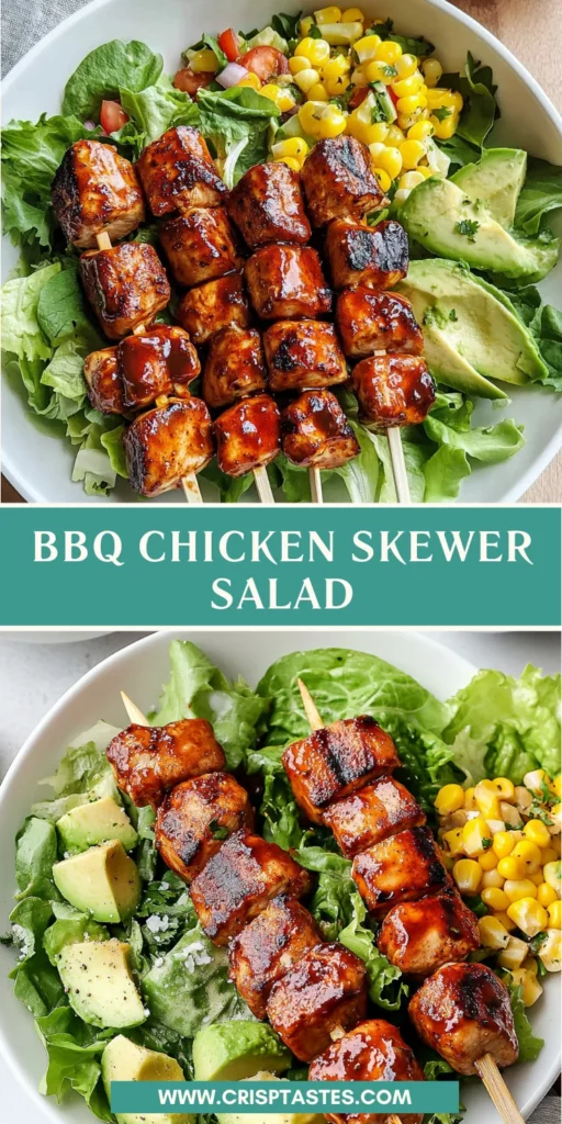 This BBQ chicken skewer salad is a game-changer for busy days. It’s quick to prepare, taking just about 50 minutes from start to finish. The combination of smoky grilled chicken and fresh veggies creates a burst of flavor in every bite. Plus, it’s versatile! You can customize it to suit your family’s tastes. Whether you’re feeding picky eaters or health-conscious friends, this salad is sure to please everyone at the table.