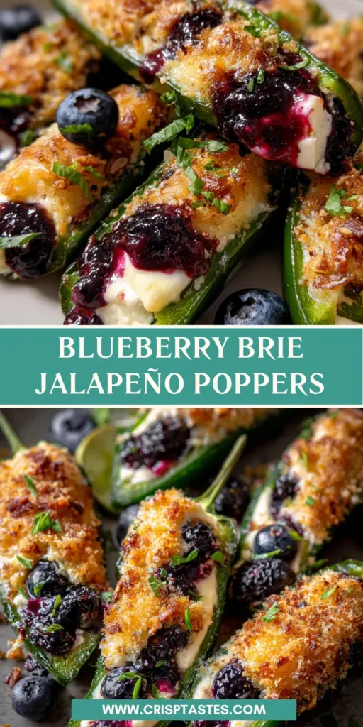 Creating Blueberry Brie Jalapeño Poppers is more than just a cooking task; it’s an experience! The joy in watching your loved ones light up as they take their first bite is priceless. You’ve got the sweetness of blueberries, the creaminess of brie, and just the right amount of heat all in one bite—what could be better? They’re perfect for gatherings, family dinners, or a little indulgence just for you. Remember, cooking is a journey, not a race. So, let’s savor these moments together, one popper at a time!