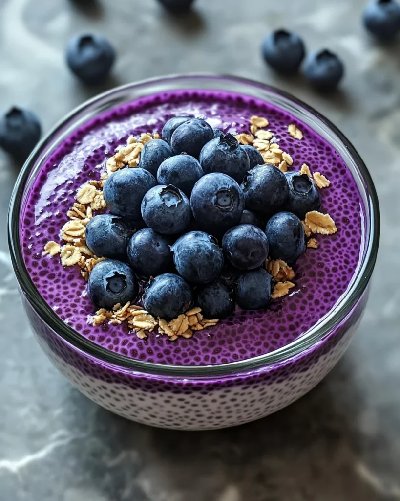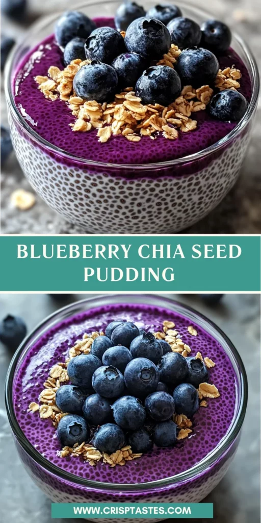 A delightful and healthy pudding made with chia seeds and fresh blueberries, perfect for dessert or breakfast.