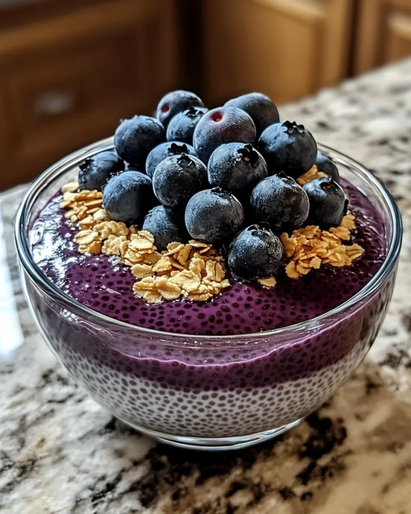 A delicious and healthy dessert made with chia seeds and blueberries, perfect for breakfast or a sweet treat.