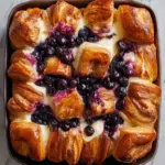 A delightful casserole made with croissants, blueberries, and a creamy custard, perfect for breakfast or brunch.