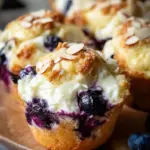 Now it’s time for the fun part! Gently fold in the blueberries and sliced almonds using a spatula. Be careful here! You want to keep those blueberries whole to avoid a purple mess. This gentle motion helps maintain the light texture of the muffins, giving you little pockets of juicy goodness in every bite.