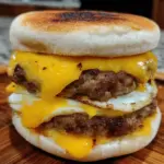 While the patties rest, let’s toast those English muffins! Take each muffin and spread a little melted butter on the cut sides. Toast them in a skillet until they’re golden and crisp. This step is crucial—the perfect muffin provides a nice contrast to the soft eggs and juicy sausage! The crisp gives your breakfast sandwich that satisfying crunch. Don’t rush; this is part of the love!