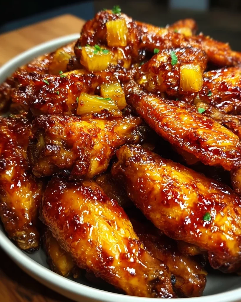 Brown Sugar Pineapple Wings are a perfect blend of sweet and savory flavors, featuring crispy chicken wings coated in a tangy pineapple glaze.