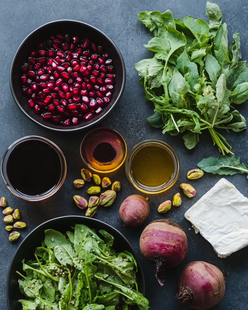 Ingredients for Burrata and Roasted Beet Salad with Pomegranate Glaze and Pistachios