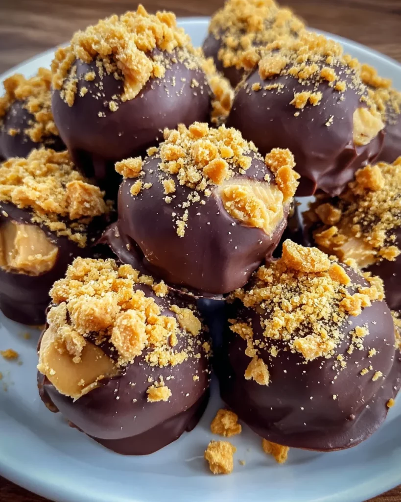 These Butterfinger Peanut Butter Balls are an irresistibly easy treat that combine rich peanut butter, crushed Butterfinger bars, and a chocolate coating for a delightful indulgence.