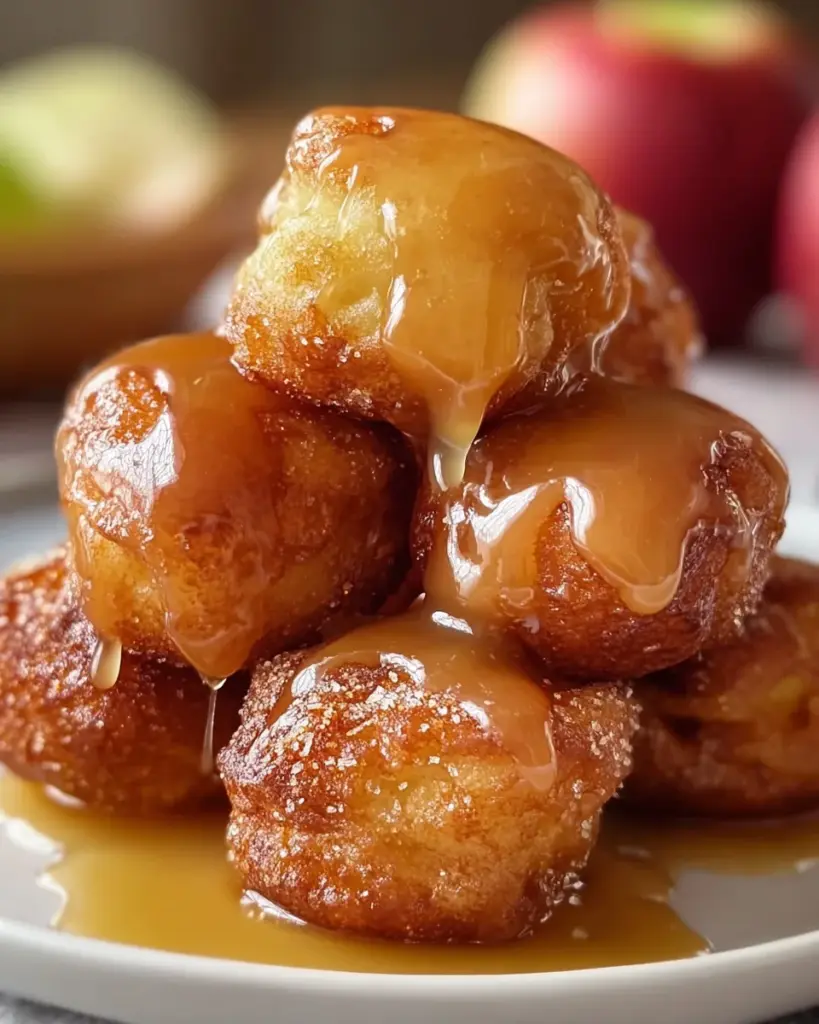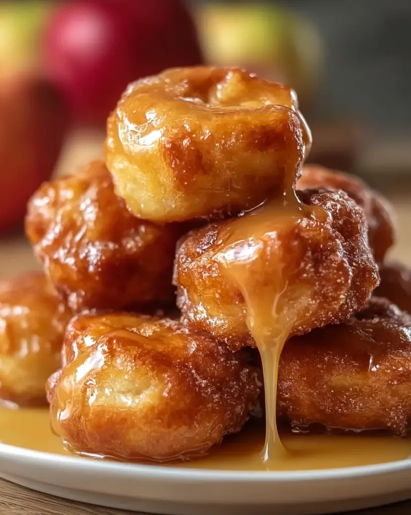 Butterscotch Golden Cinnamon Glazed Apple Fritter Bites delight with every bite!