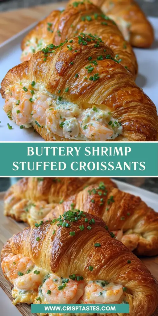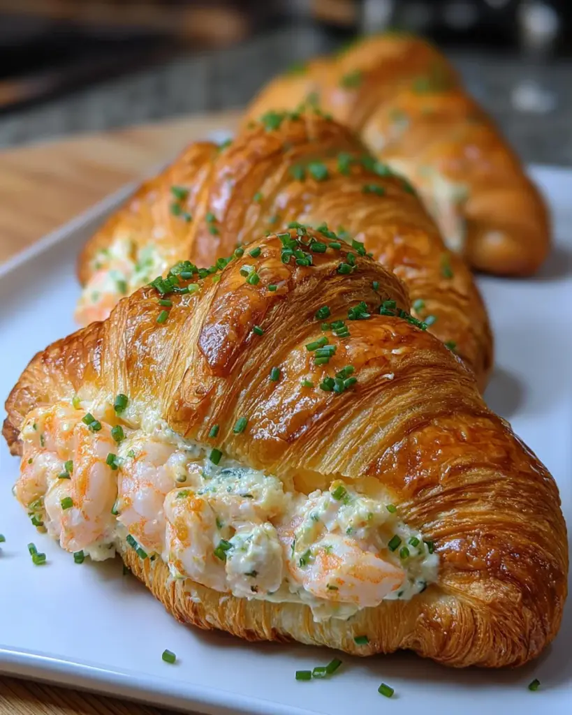 A delicious and savory recipe for buttery shrimp stuffed croissants, perfect for a delightful appetizer or snack.