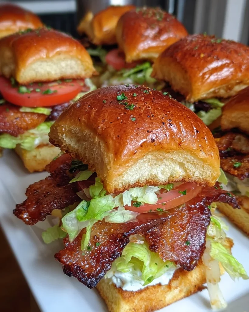 Candied Bacon BLT Sliders are an irresistible combination of sweet, salty, and savory flavors packed into a bite-sized treat, perfect for any gathering.