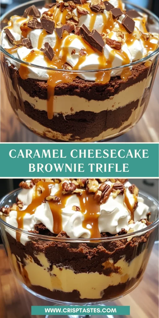 Creating this Caramel Cheesecake Brownie Trifle isn’t just about making a dessert; it’s about crafting moments of joy. Each layer tells a story of indulgence and celebration, perfect for sharing with family and friends. The smiles that accompany each bite are a reminder that life’s sweetest moments are often found around the table. So, whether it’s a special occasion or a well-deserved treat after a long day, this trifle brings happiness to any gathering. I hope this recipe inspires you to whip up your own sweet memories. Happy baking!