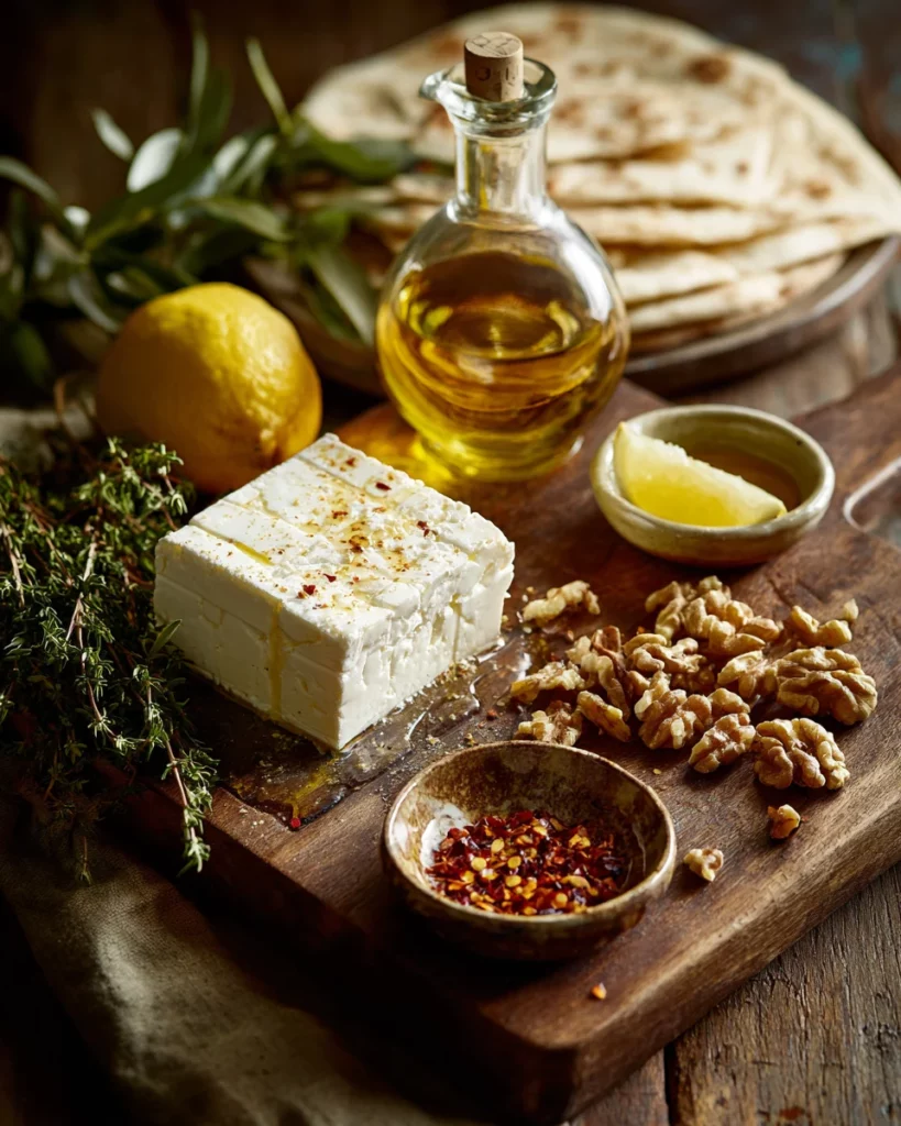 - Crusty baguette or sourdough slices: Their crisp texture complements the soft, creamy feta.