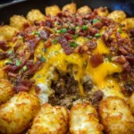 A delicious and hearty dish combining the flavors of cheeseburgers and crispy Tater Tots, perfect for a satisfying meal.