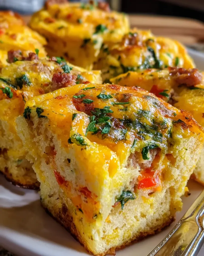 A delicious and satisfying breakfast dish that combines the fluffiness of biscuits with a cheesy egg frittata, perfect for starting your day.