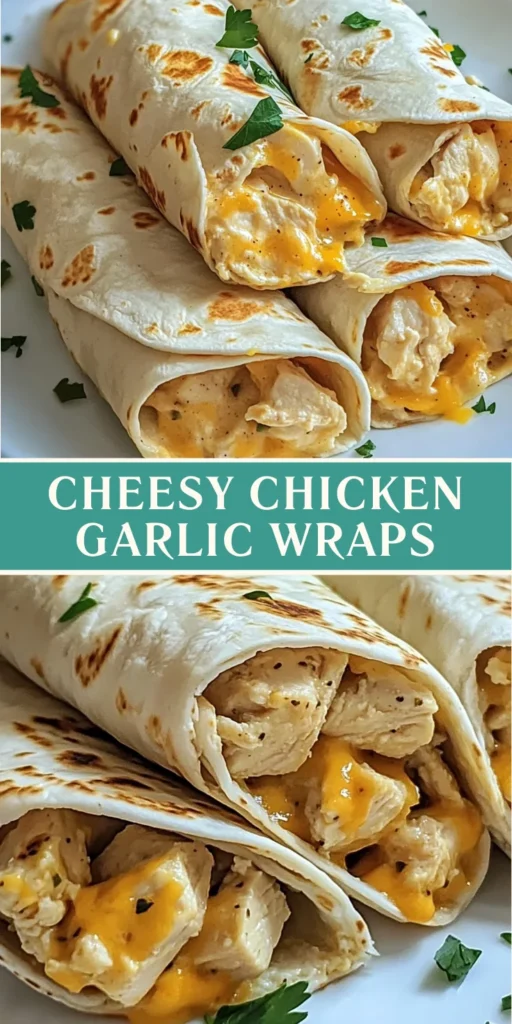 These Cheesy Chicken Garlic Wraps are a game-changer for busy moms and professionals alike. They come together in just 20 minutes, making them a perfect weeknight meal. The combination of tender chicken, gooey cheese, and zesty garlic sauce creates a flavor explosion that will have your family asking for seconds. Plus, they’re customizable, so you can easily cater to picky eaters or add your favorite veggies!