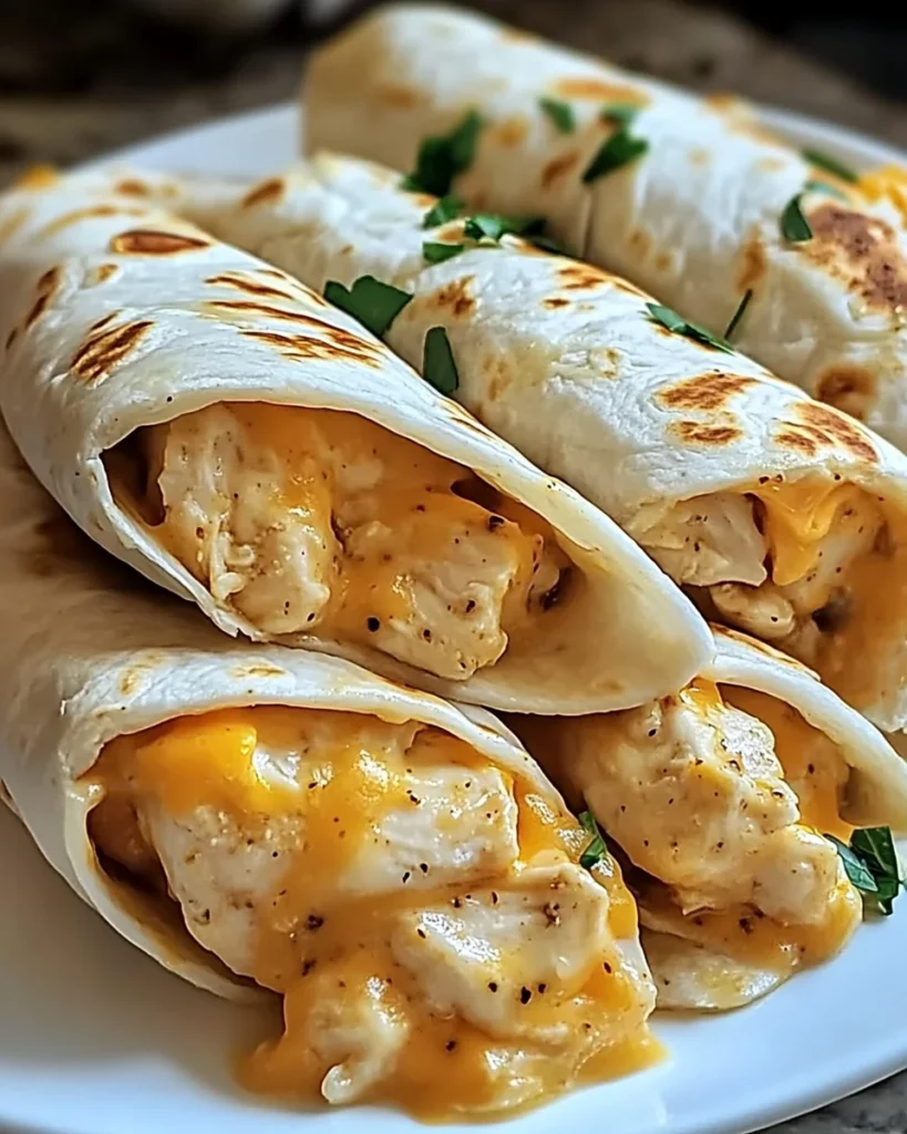 Cheesy Chicken Garlic Wraps are a delicious and easy-to-make meal featuring seasoned chicken, melted cheese, and creamy garlic sauce wrapped in flour tortillas.