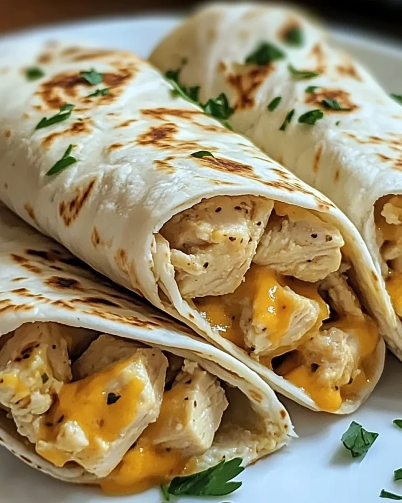 Cheesy Chicken Garlic Wraps are a delicious and easy-to-make meal featuring seasoned chicken, melted cheese, and creamy garlic sauce wrapped in flour tortillas.