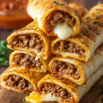 Cheesy Taco Sticks offer a delicious twist on traditional tacos, combining seasoned ground beef and gooey cheese in a convenient stick form.
