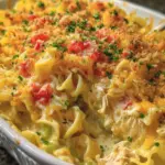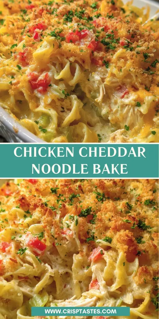 A comforting and delicious Chicken Cheddar Noodle Bake that combines tender chicken, creamy sauce, and a crunchy topping.
