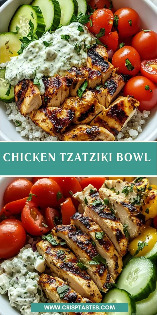 Creating a Chicken Tzatziki Bowl is more than just cooking; it’s about bringing joy to your table. This dish is a celebration of fresh flavors and vibrant colors, making it a feast for both the eyes and the palate. I love how it effortlessly combines healthy ingredients with a touch of Mediterranean flair. Whether you’re enjoying it on a busy weeknight or serving it at a gathering, this bowl is sure to impress. Plus, the smiles on your loved ones’ faces as they savor each bite? That’s the real reward of cooking. Dive in and enjoy every delicious moment!