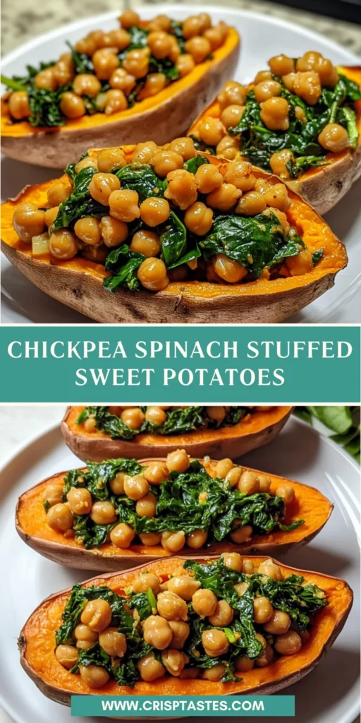 Creating Chickpea Spinach Stuffed Sweet Potatoes is more than just following a recipe; it’s about embracing the joy of nourishing yourself and your loved ones. The warmth of the sweet potatoes, combined with a vibrant chickpea-spinach filling, brings cozy satisfaction to any dinner table. Whether you’re impressing guests or enjoying a quiet meal at home, this dish is sure to brighten your day. Plus, the easy prep means you can whip it up without a fuss, leaving you more time to savor those moments that matter most. Happy cooking!