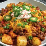 Chili Cheese Potato Skillet is a hearty and comforting dish that combines crispy potatoes, savory beef, and melted cheese, creating a satisfying meal.