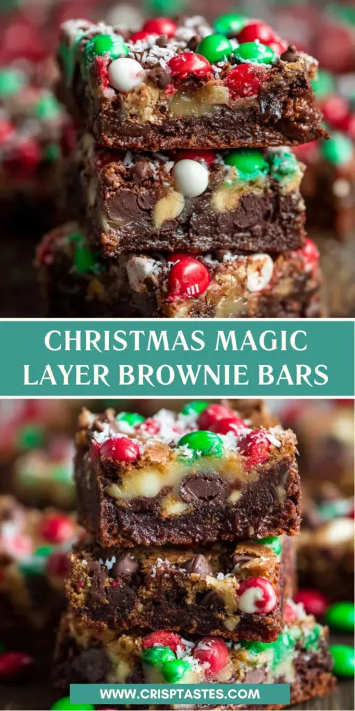 Christmas Magic Layer Brownie Bars are a delightful dessert combining layers of brownies, toppings, and chocolate for a festive treat.