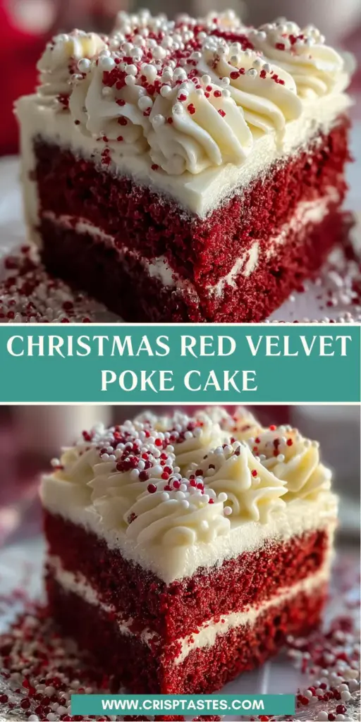 Baking the Christmas Red Velvet Poke Cake is more than just following a recipe; it’s creating memories. The vibrant colors and rich flavors bring joy and warmth, fitting perfectly into your holiday traditions. Each slice is a delightful celebration, a sweet reminder of the love shared around family tables. As you serve this cake, watch as smiles blossom and laughter fills the room. Trust me, this poke cake will quickly become a cherished favorite, making your holiday gatherings a little sweeter and a lot more memorable. So, gather your loved ones and enjoy every delicious bite!