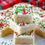 Deliciously soft and sweet Christmas Sugar Cookie Bars topped with creamy frosting and festive sprinkles, perfect for holiday gatherings.