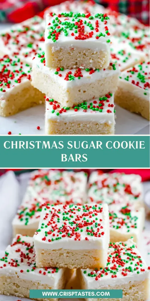 Baking these Christmas Sugar Cookie Bars fills your kitchen with warmth, laughter, and delightful smells that truly capture the spirit of the season. Each soft, sweet bite is a little celebration, perfect for sharing with loved ones or enjoying during cozy nights in. Plus, whipping them up is a fun activity that can involve the whole family. So gather your ingredients, embrace the joy of baking, and create your own festive memories. With a tray of these bars, you’ll certainly bring smiles not just to your family’s faces, but also to your heart!