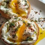 It’s time for the grand assembly! Grab two English muffin halves and place them on a plate. Spread a generous layer of your yogurt mixture on top—don’t be shy! Now, gently place a poached egg on each muffin half, letting it sit like a proud crown. Finally, drizzle that beautiful spiced butter over the eggs. Toss on some fresh herbs for garnish and a sprinkle of black pepper to finish. Now, you’ve created a meal that looks as good as it tastes!