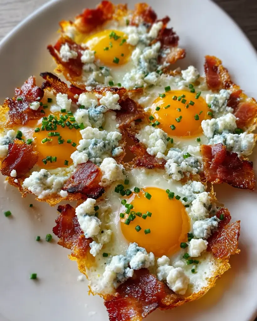 Cloud eggs blue cheese bacon are a fluffy and flavorful brunch dish featuring whipped egg whites, creamy blue cheese, and crispy bacon, creating a delightful combination.