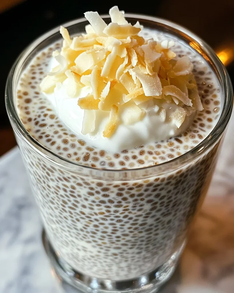 Your Coconut Chia Pudding is ready to shine! Spoon it into bowls or lovely jars for a pretty presentation. Top with extra Greek yogurt and a sprinkle of shredded coconut. You could even toss in some fresh fruits or nuts for added flavor. Now, sit back, take a moment, and savor the deliciousness of your hard work (that wasn’t too hard, was it?). Enjoy!