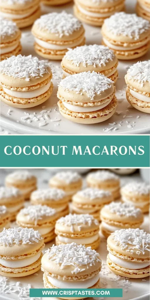 Creating these Coconut Macarons is more than just baking; it’s a delightful experience that brings joy to both the maker and the eater. Picture the smiles on your loved ones’ faces when they take that first bite of chewy, coconut-filled goodness. It’s those little moments of happiness that make cooking so meaningful. Whether you’re enjoying them with a cup of tea or presenting them at a gathering, these Coconut Macarons are sure to impress. So roll up your sleeves, embrace the messiness of the kitchen, and let these treats spread sweetness in your life!