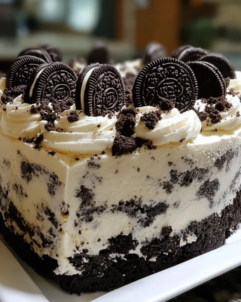 Garnish with whole Oreo cookies and a sprinkle of crushed Oreos around the edges for that perfect touch of decadence. Slice, serve, and get ready for all the compliments!