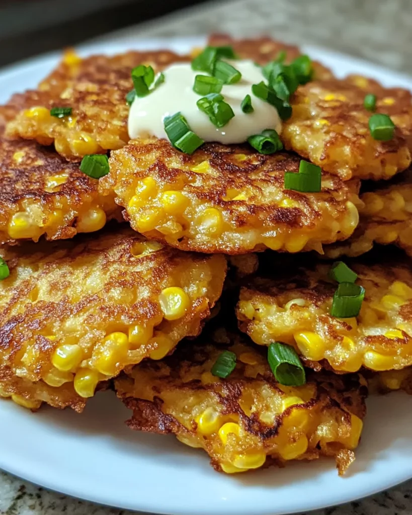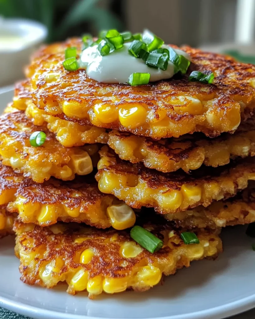 Delicious corn fritters that are crispy on the outside and tender on the inside, perfect as a snack or appetizer.