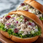 Now comes the exciting part—building your sandwich! Lay out your slices of whole-grain bread or sandwich rolls. If you like, add a few crisp lettuce leaves to the bottom slice for a fresh crunch. Next, generously scoop your chicken salad mixture onto one piece of bread or the bottom half of the roll. Spread it out evenly, letting it sit like a creamy cloud waiting to be crowned. Top it off with another slice of bread, pressing down gently. For a touch of color, you might want to add some sliced tomatoes peeking out from the edges. Cut your sandwich in half; voilà, it’s ready to enjoy!