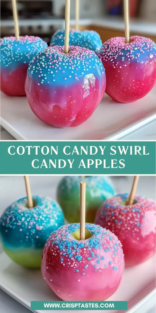Cotton Candy Swirl Candy Apples are not just a treat; they’re an experience! The preparation is simple, making it easy for busy moms like us to involve the kids and create fun memories together. Each bite is a burst of vibrant sweetness, reminiscent of childhood fairs and carefree moments. Perfect for parties or family gatherings, these magical apples will have everyone reminiscing and smiling!